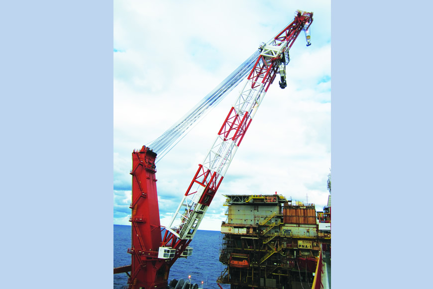 石油鉆井平臺專用起重機用于超萬噸海上石油鉆井平臺、船舶等海工裝備設(shè)施的吊裝建造。與傳統(tǒng)建造工藝相比,整體單次吊裝可為用戶節(jié)省200多萬個工時,建造周期縮短30%以上。大連重工2006年為萊福士海洋工程有限公司設(shè)計制造的20000t石油鉆井平臺專用橋式起重機已成功應(yīng)用于超萬噸海上石油鉆井平臺的整體吊裝合攏。